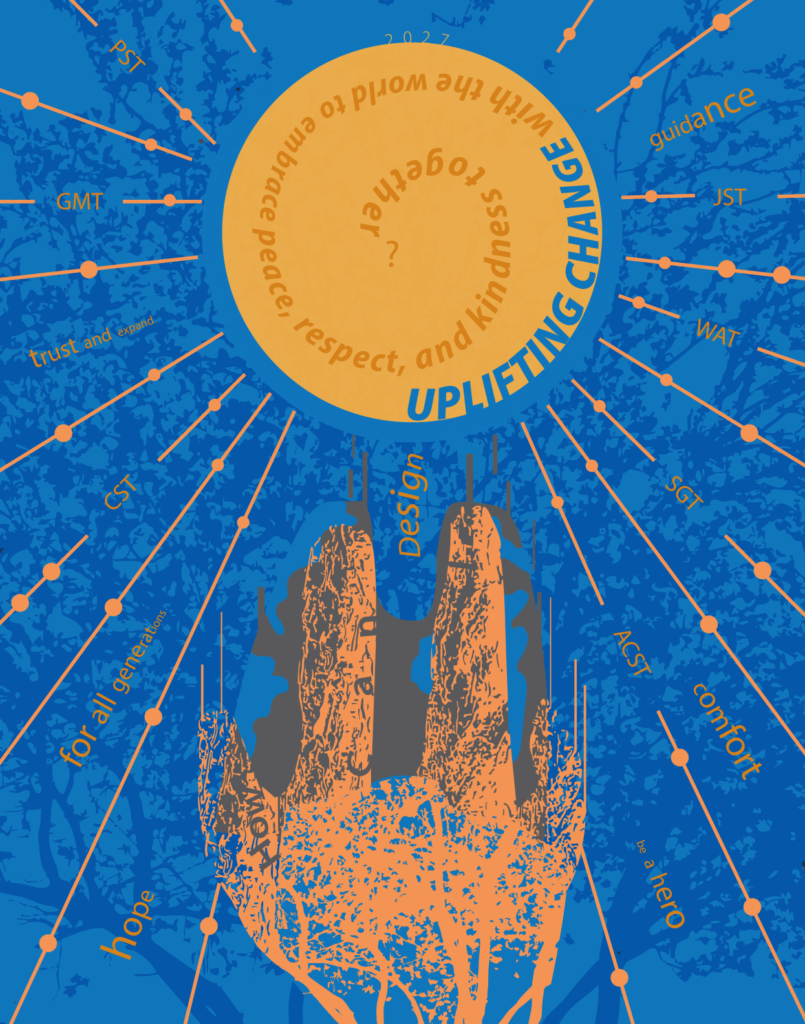 Design a poster based on intention. My intention is “how can I design uplifting change with the world to embrace peace, respect, and kindness together?”